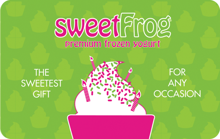 Sweet Frog Gift Certificates - The ultimate frog lover's gift catalog website.. Explore our fab gifts today! Sweetfrog gift cards must be loaded with a minimum value of$5. Birthday gifts gifts for her gifts for him gifts for kids personalized sympathy gifts mother's day gifts mother's day gifts mother's day experiences gift certificates. Well you're in luck, because here they come. Enjoy the sweet conclusion of this great journey when you disembark at sweetfrog premium frozen yogurt with this deal, good for $20 worth of frozen yogurt for just $10.